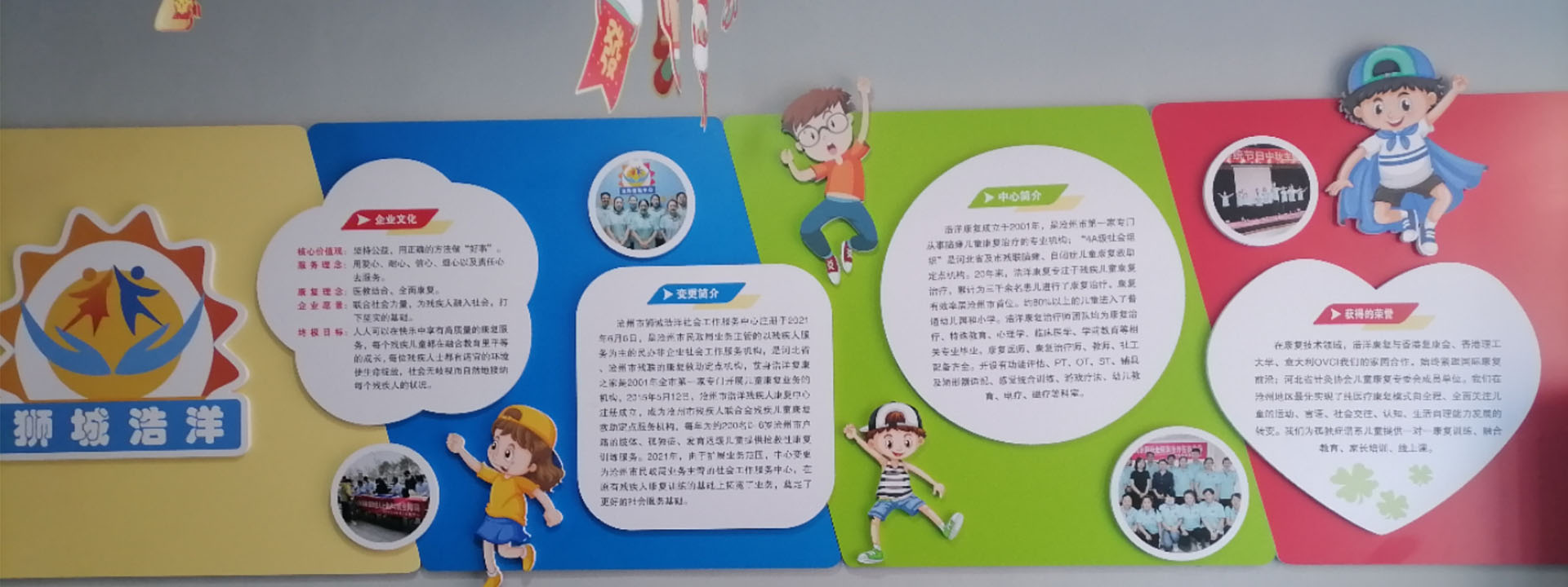 滄州市獅城浩洋社會(huì)工作服務(wù)中心注冊(cè)于2021年6月6日,是滄州市民政局業(yè)務(wù)主管的以殘疾人服務(wù)為主的民辦非企業(yè)社會(huì)工作服務(wù)機(jī)構(gòu)。前身浩洋復(fù)康之家是2001年全市第一家專門開展腦癱康復(fù)業(yè)務(wù)的機(jī)構(gòu),2015年5月12日,滄州市浩洋殘疾人康復(fù)中心注冊(cè)成立,成為滄州市殘疾人聯(lián)合會(huì)殘疾兒童康復(fù)救助定點(diǎn)服務(wù)機(jī)構(gòu),每年為約200名0-6歲滄州市戶籍的肢體、孤獨(dú)癥、發(fā)育遲緩兒童提供搶救性康復(fù)訓(xùn)練服務(wù)。2021年,由于殘聯(lián)不能再作為業(yè)務(wù)員主管單位,中心變更為滄州市民政局業(yè)務(wù)主管的社會(huì)工作服務(wù)中心,在原有殘疾人康復(fù)訓(xùn)練的基礎(chǔ)上拓寬了業(yè)務(wù),奠定了更好的社會(huì)服務(wù)基礎(chǔ)。